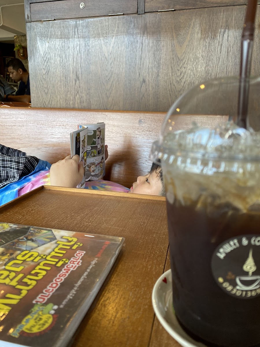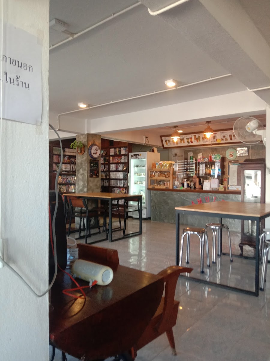 Worth a visit just for the comic themed decor. Excellent place to rest when waiting for a bus. The air was a little warm because the air was set at 28 Celsius but had ample fans to make up for it. Owner speaks basic English and offers the standard Thai coffee shop menu. The store is lined with anime comic books but they are all in Thai.